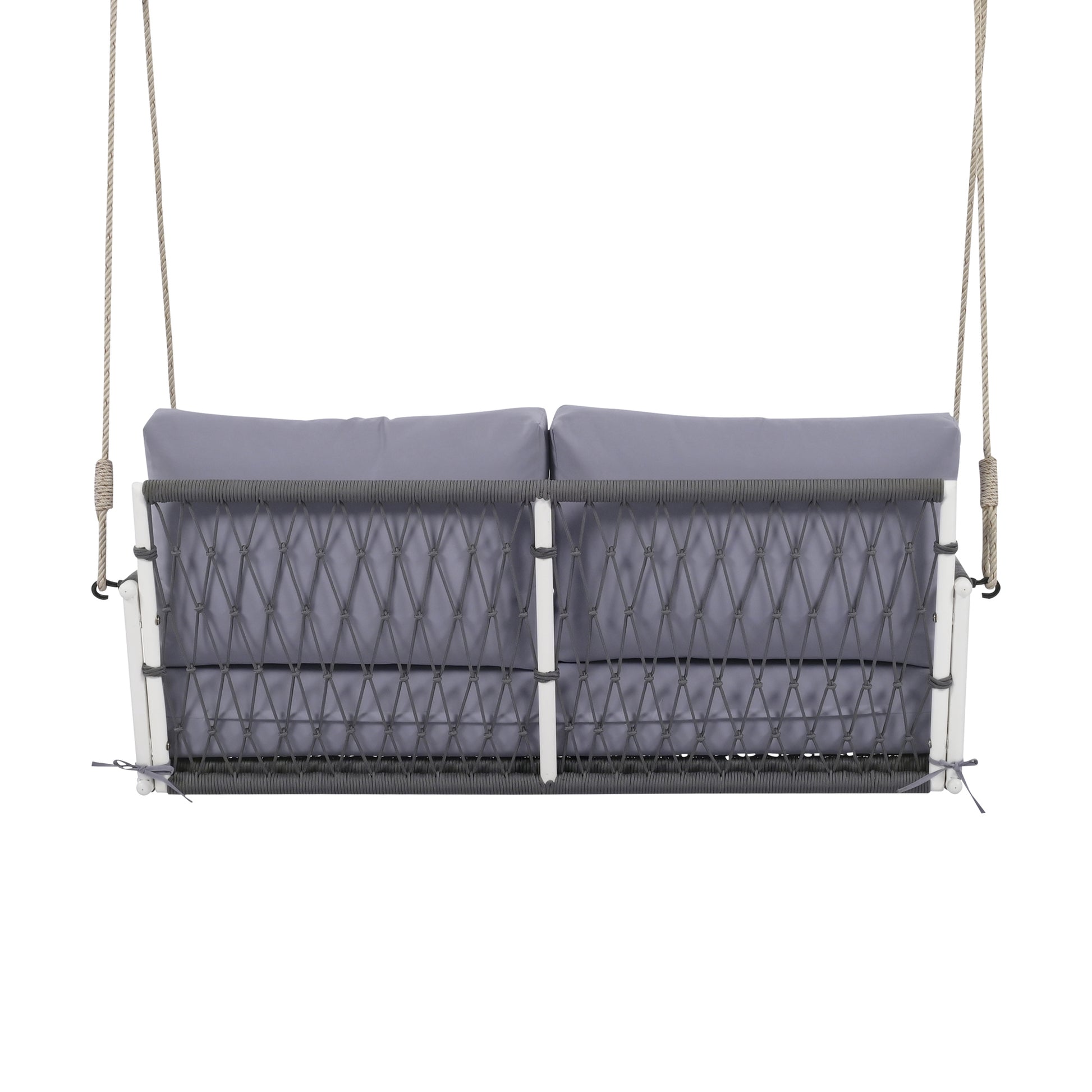 - Charming Patio Furniture Addition: A delightful addition to any patio or garden, this charming two-person outdoor swing sofa elevates your outdoor space. Its elegant iron frame, intricately woven rope surface, and soft cushions create an inviting atmosphere, blending seamlessly with your outdoor decor while adding a touch of sophistication and comfort to your relaxation area.