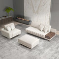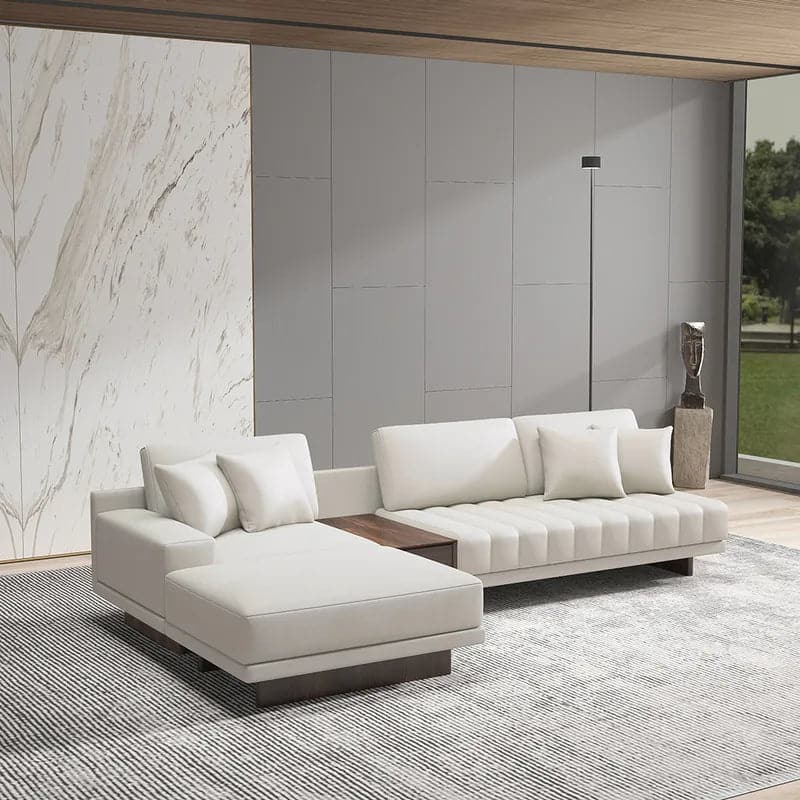 Charaterized by the minimal silhouette, plush cushioning, and soft fabric, the sofa will transport you to an atmosphere of refined elegance. Combined seat cushion and side table with drawer to meet multifunction and elegance, this new kind of open end sofa will bring more comfortable and convenient expereince in your leisure time. Wherever it is placed, it will bring concize and chic to your decor.