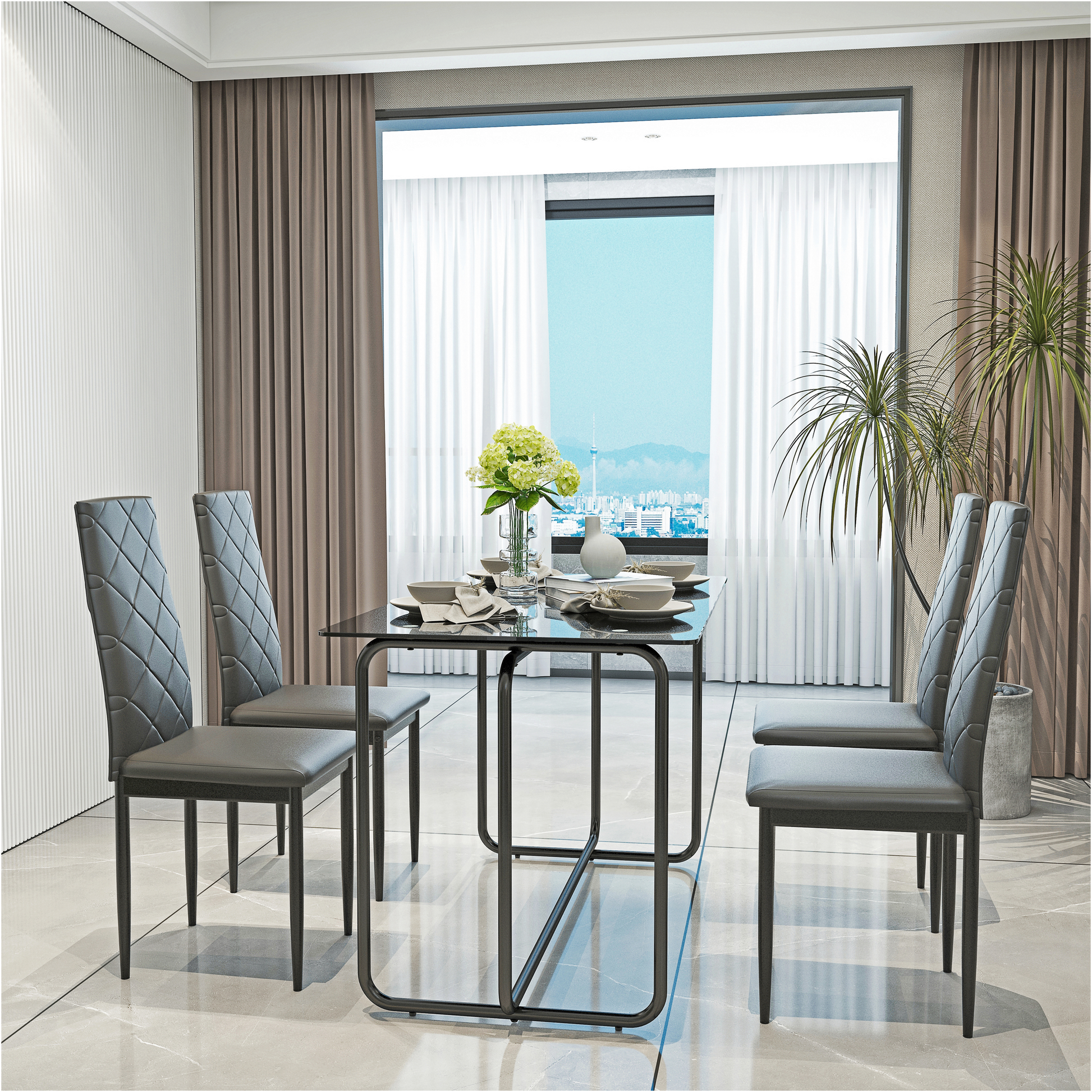 Product Name:5-piece Rectangle Dining Table Set with Metal Frame, Tempered Glass Dining Table for Kitchen Room, Black