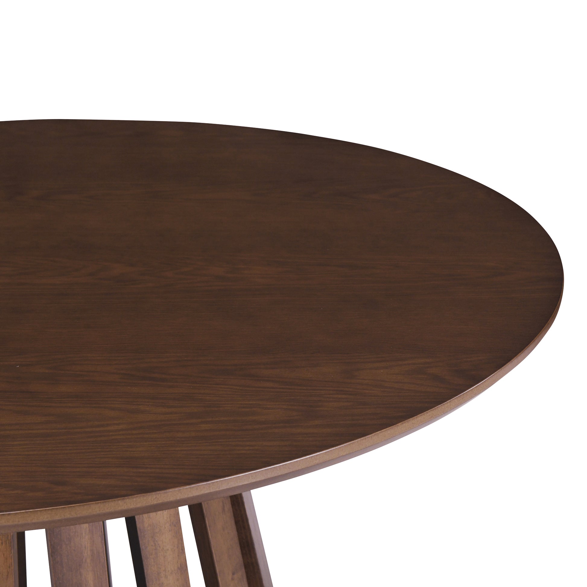 - Vintage Style: The retro dining set comprises one round dining table and four matching upholstered chairs, blending understated elegance with a rich vintage feel. It will enhance the charm of your dining room with the classic retro approach. Available in two well-combined colors, walnut and light brown, this dining set reflects a variety of design aesthetics and can bring a retro romantic atmosphere to your restaurant, kitchen area or dining room.