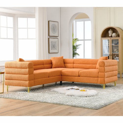 1. The sofa must be installed in strict accordance with the instructions. 2. When the sofa seat bag is received, it is in a vacuum state. Please open the bag according to the instructions (note: do not hang it with a blade when unpacking, it is easy to damage the inner liner of the seat bag. Use scissors to cut along the edge .) Take out the seat bag liner, and install the sofa cushion cover (Note: When installing the seat bag cover, you must install it according to the instruction manual. , you need to pat and tidy the four sides of the sofa seat bag several times) and it can be 100% recovered after standing for 24 hours. 3. The sofa is recommended to be placed against the wall. 4. After confirming the accessories: the angle bracket is installed, the sofa can be moved for a short distance. When moving, two people are required to move it, and handle it with care. ▲Product details. Carton quantity: 3 pcs. Product Name: Corner Sofa.DIMENSIONS. Please refer to the picture. Detailed Size. Please refer to the picture. Package Size. Please refer to description. Package Weight (lbs). Please refer to description. Product Weight (lbs). Please refer to description. Does this product include pillows: Three pillows. Weight Capacity: 250 lbs/seat. Assembly Required. Required (see instructions). Fabric Material: Teddy. Frame Material: Pine + Eucalyptus + Plywood. Seat structure: Foam + spring pack. Upholstery: Cotton. Sofa foot material:metal and plastic.Place of Origin: China. Note: Manual measurement is used, there may be some reasonable error. All pictures are taken based on actual samples, there may be slight color difference due to light or monitor.