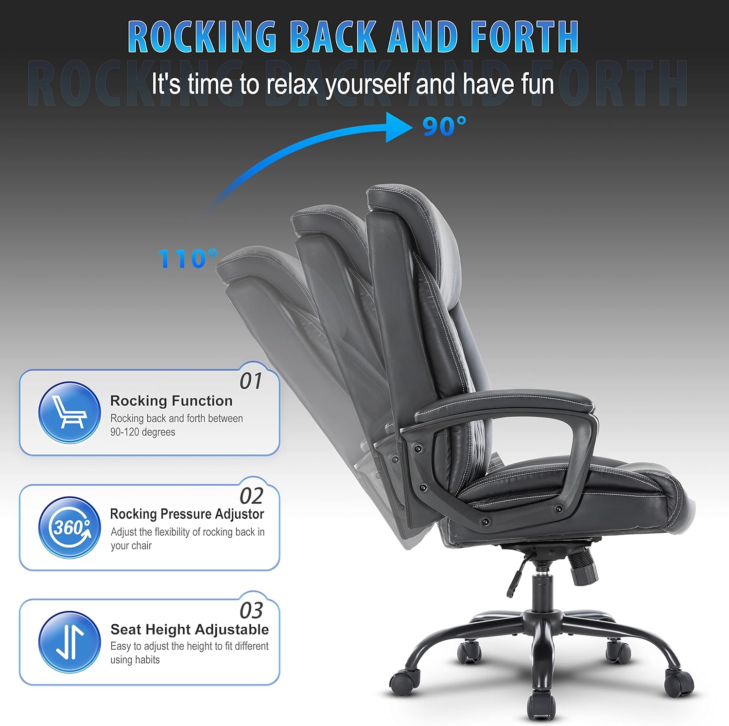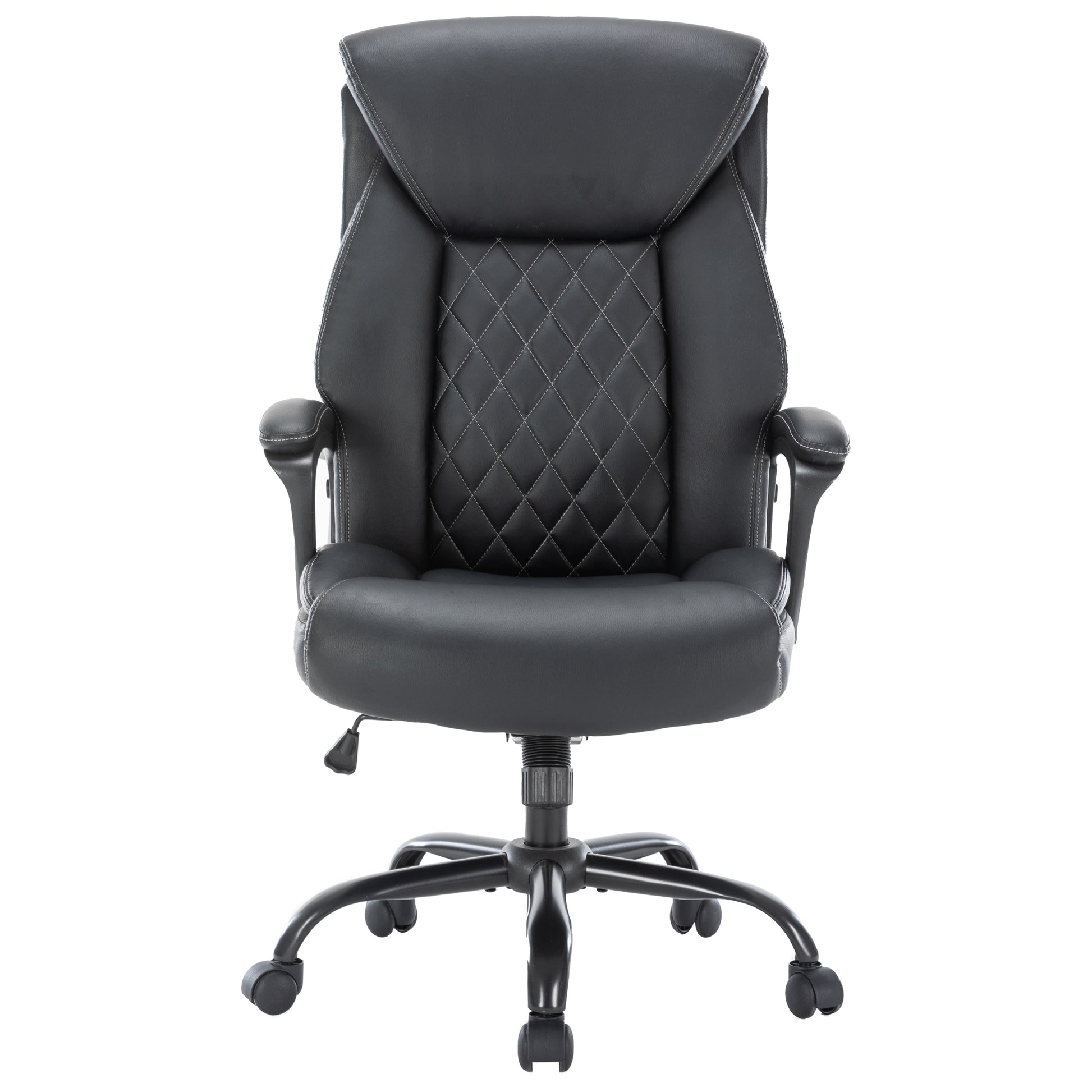 Product Name:Computer Chair-Office Chair-Executive Office Chair with Fixed Armrests-Ergonomic Office Desk Chair High Back-Computer Chair with Wheels-Leather Office Chair Black with Paded Armrests