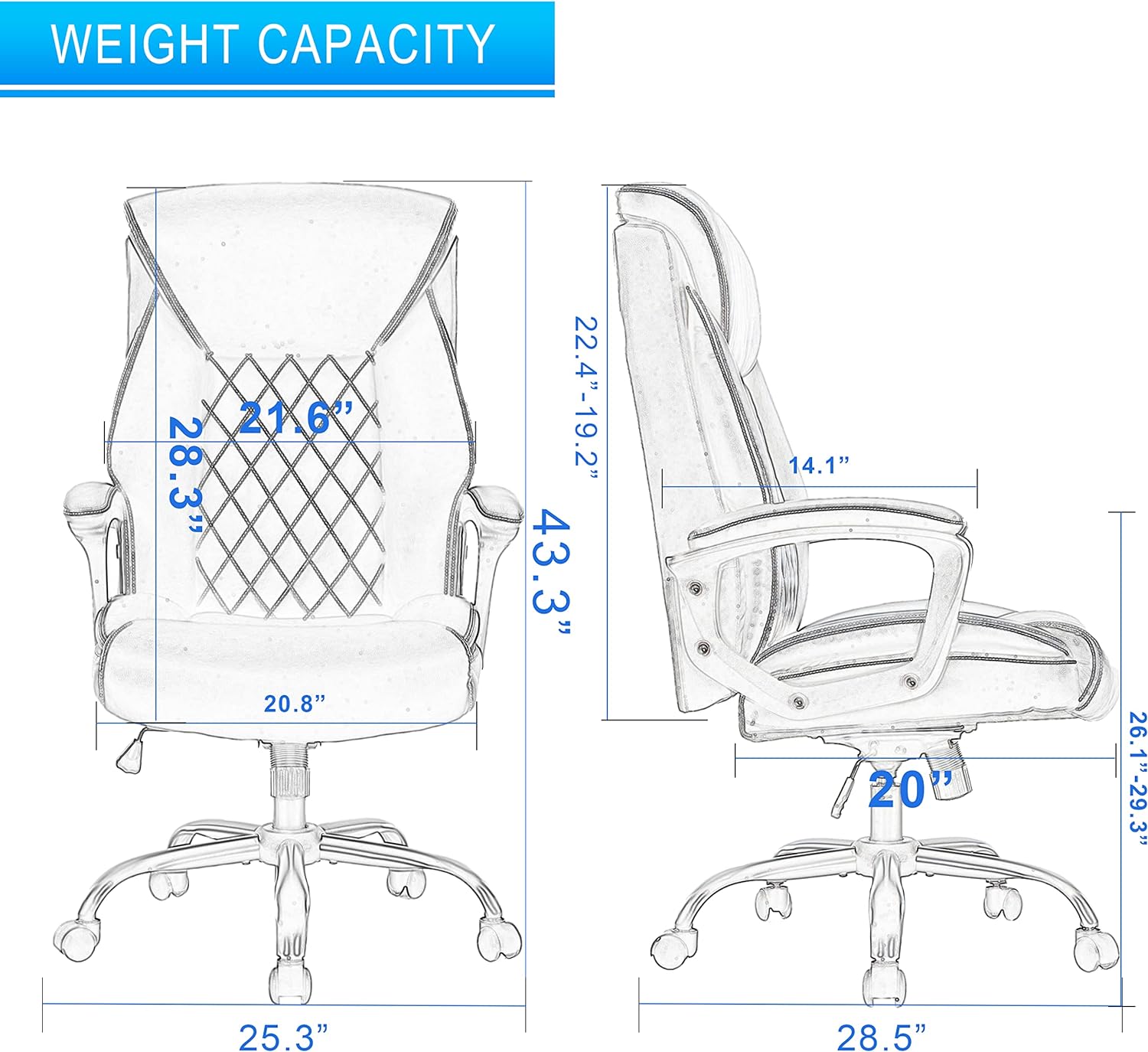 - 【SIZE】The chair dimensions are 25.39 x 28.54 x 43.31-46.46 inches (WxDxH), with a seat width of 21 inches, a seat depth of 20 inches, It's the perfect size for a variety of body types and can be adjusted to fit your needs.