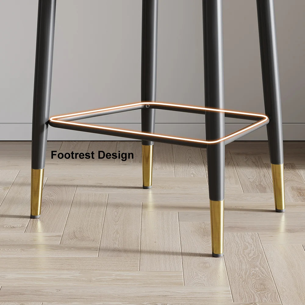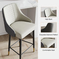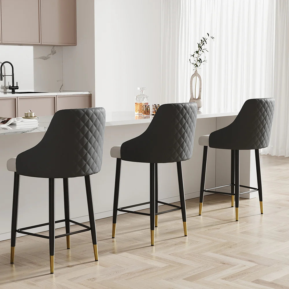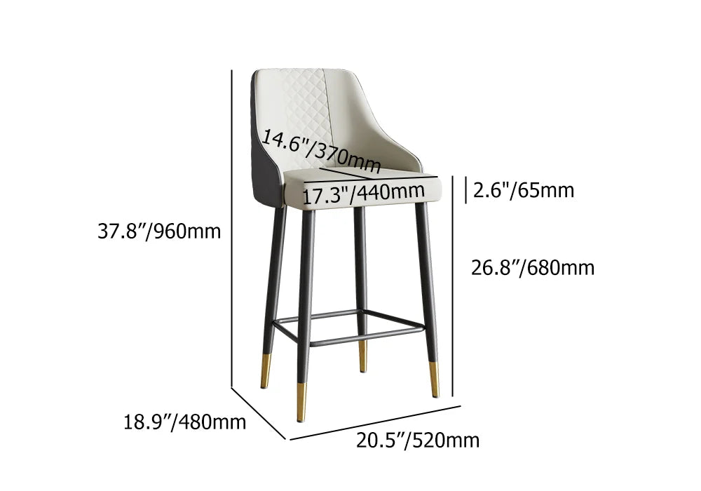 Gray Counter Stool with Footrest Upholstered PU Leather High Back&Arms