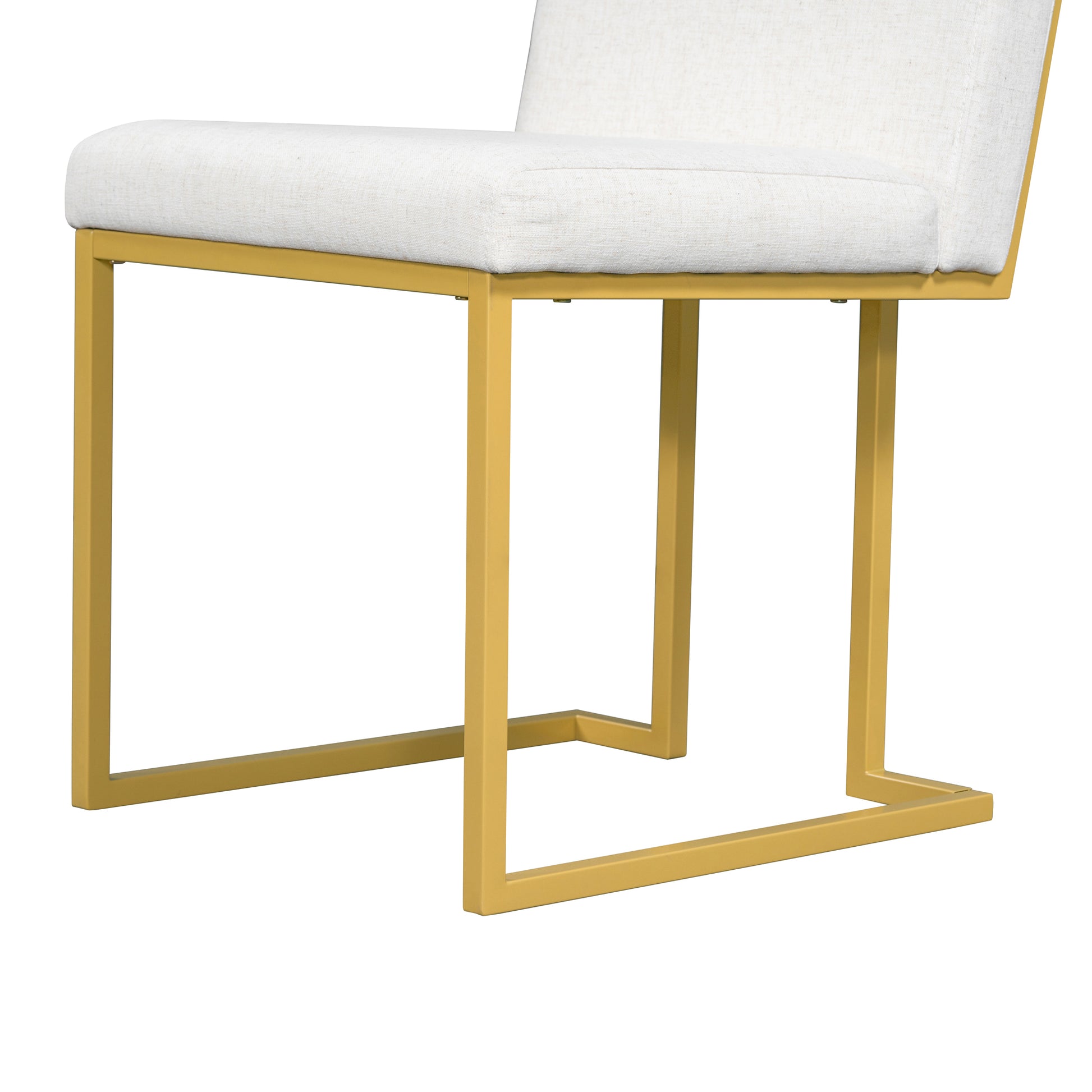 - Accentuate your dining area with this dining chair. It has an ergonomic backrest for maximum comfort. The thick linen seat and backrest are padded with high-density foam for a soft touch. The outer frame of the whole chair is made of steel, ensuring strong support for long-term use. The chair has a weight capacity of 350 LBS/piece.
