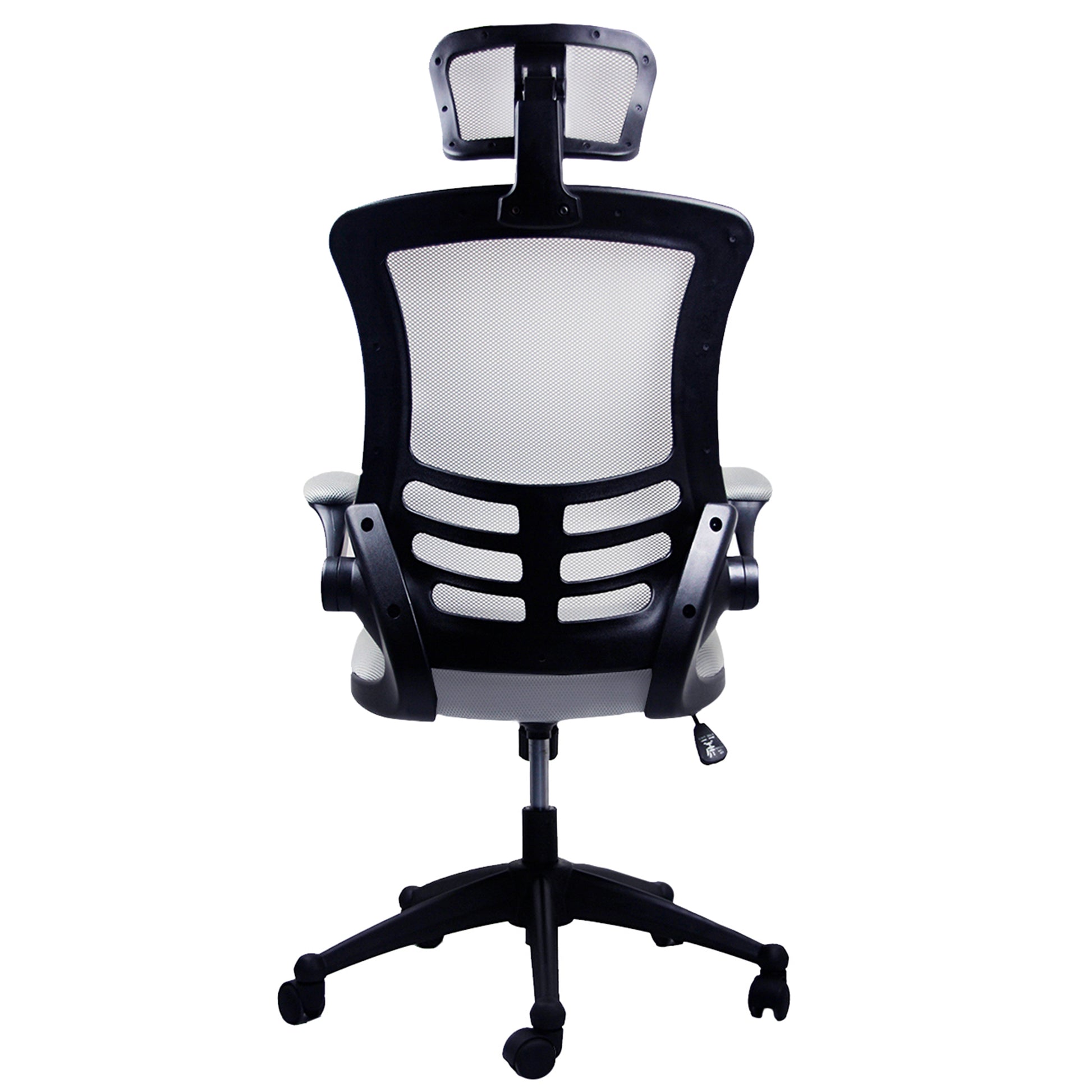 Product Name:Techni Mobili Modern High-Back Mesh Executive Office Chair with Headrest and Flip-Up Arms, Silver Grey
