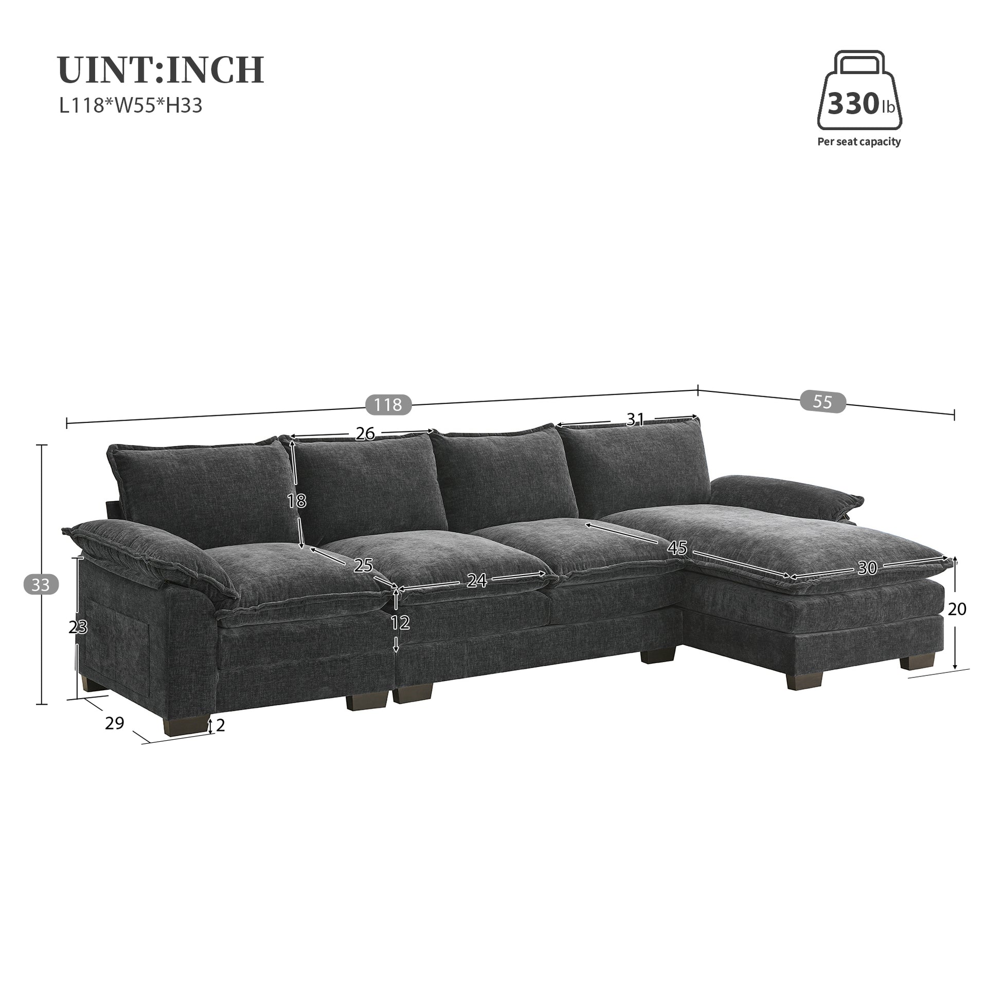 Product Name:[VIDEO provided][New]118*55" Modern L-shaped Chenille Cloud Sofa with Double Seat Cushions,5-seat Upholstered Indoor Furniture,Sleeper Sofa Couch with Chaise Lounge for Living Room,Apartment,4 Colors