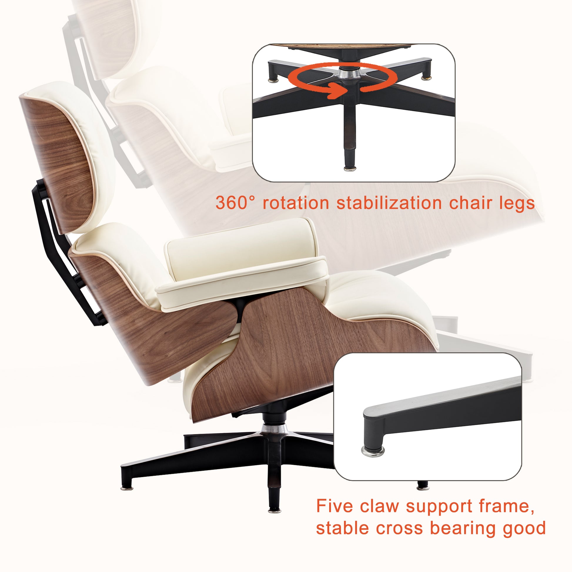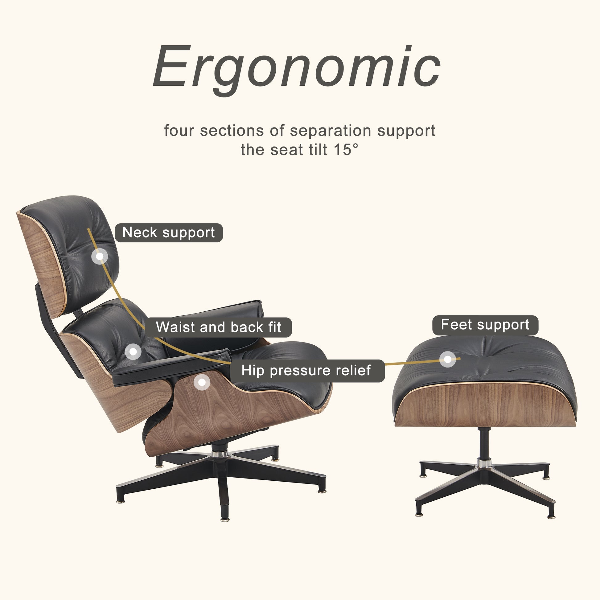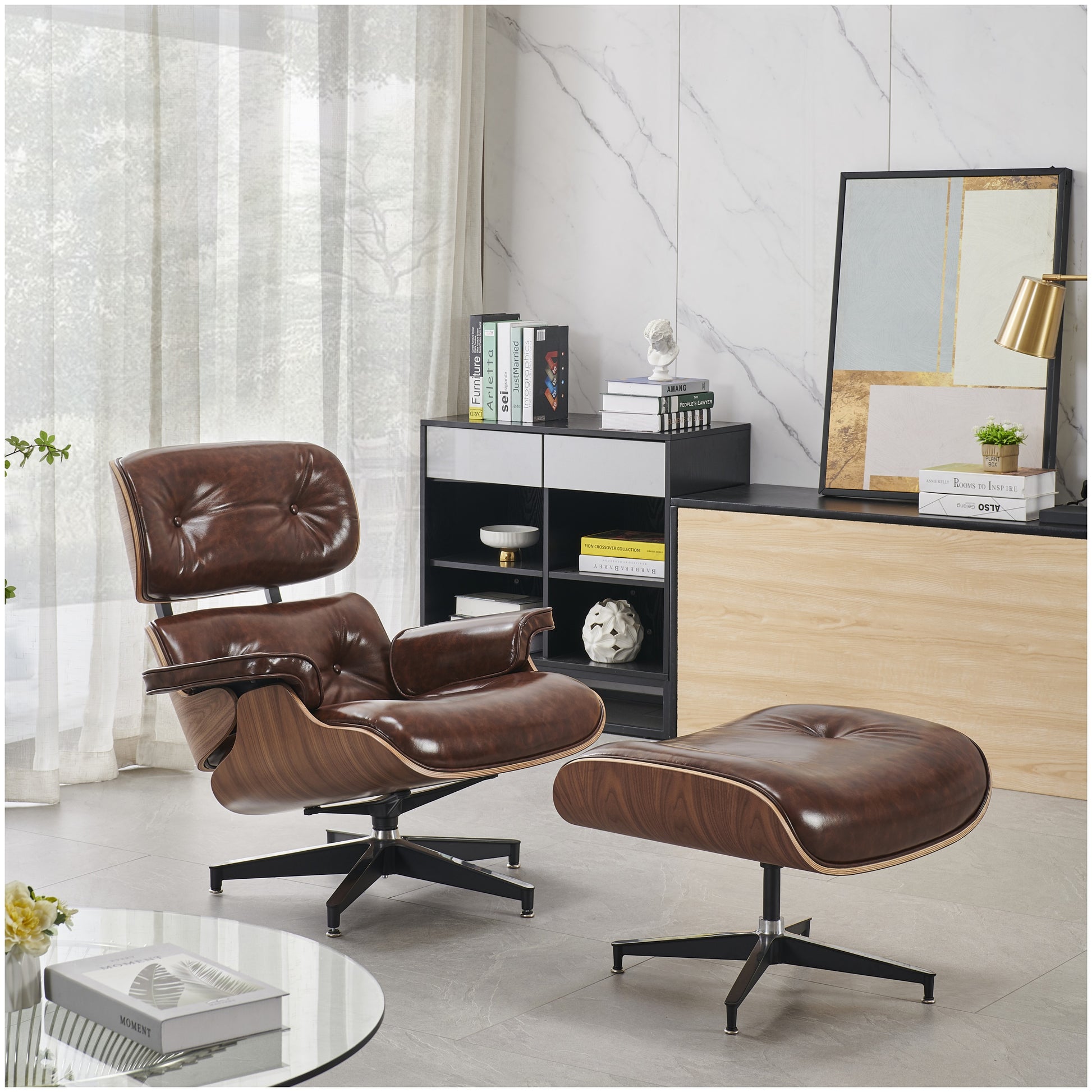 Tufted Top Grain Leather Swivel Lounge Chair and Ottoman