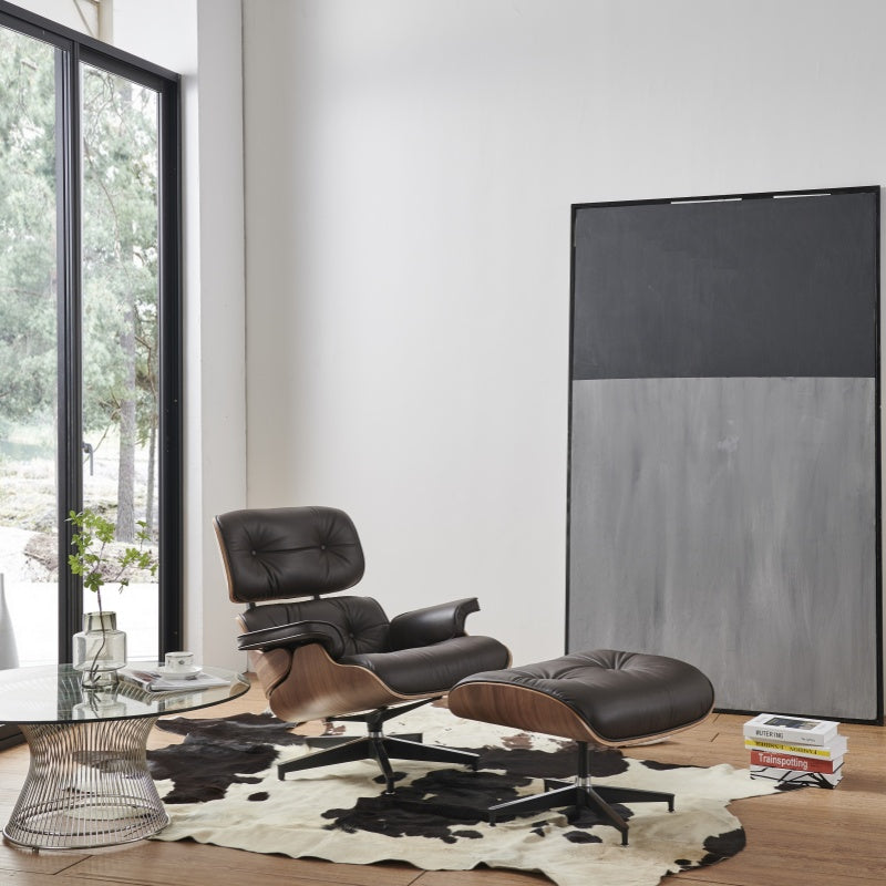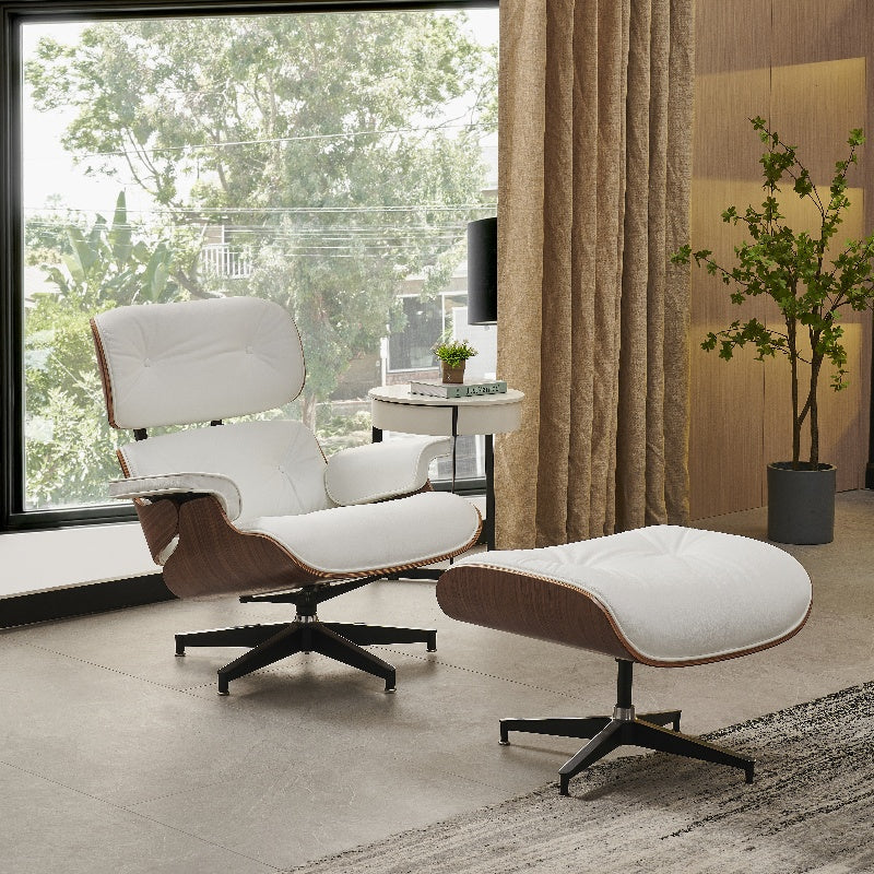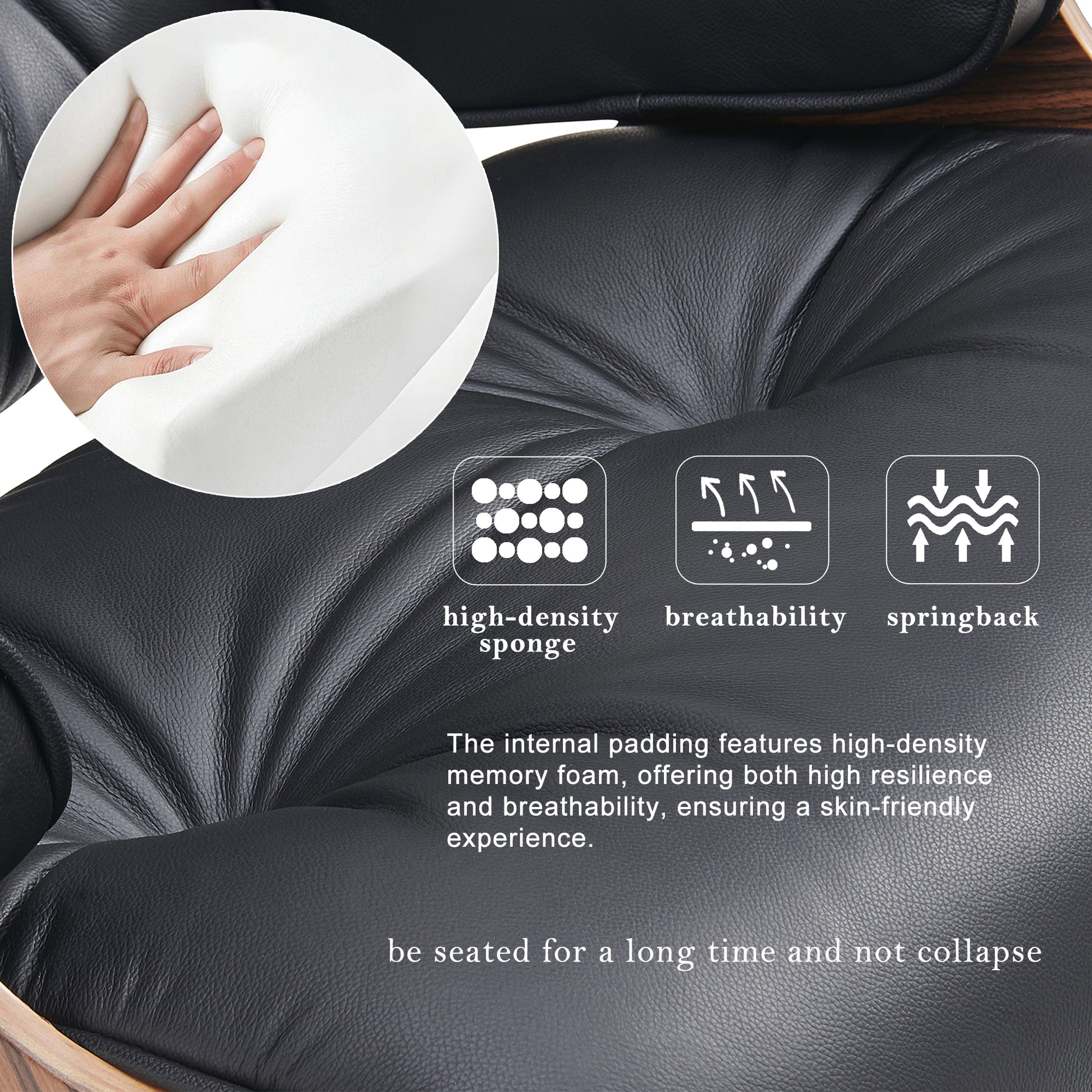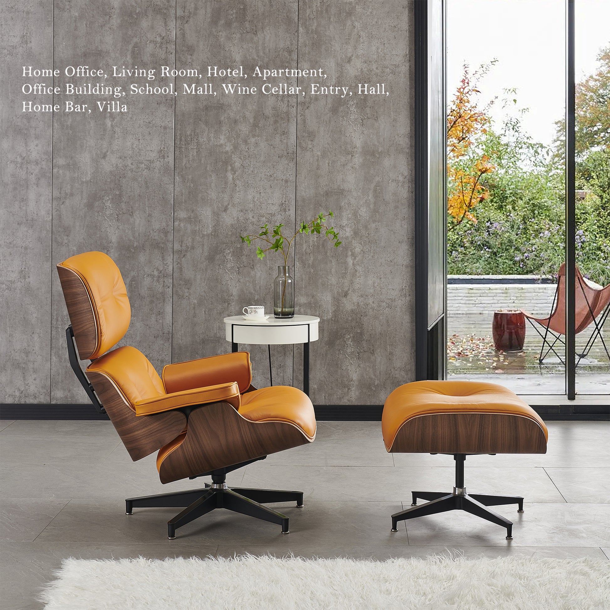 Tufted Top Grain Leather Swivel Lounge Chair and Ottoman
