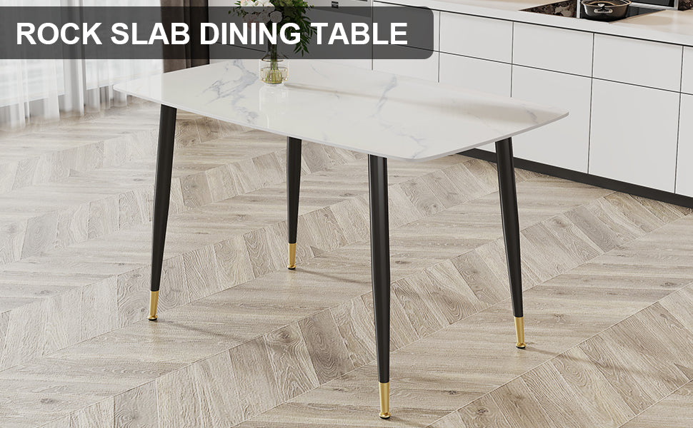Product Name:Modern minimalist dining table. White imitation marble pattern SINTERED STONE desktop with black metal legs.50"*30"*30" F-001