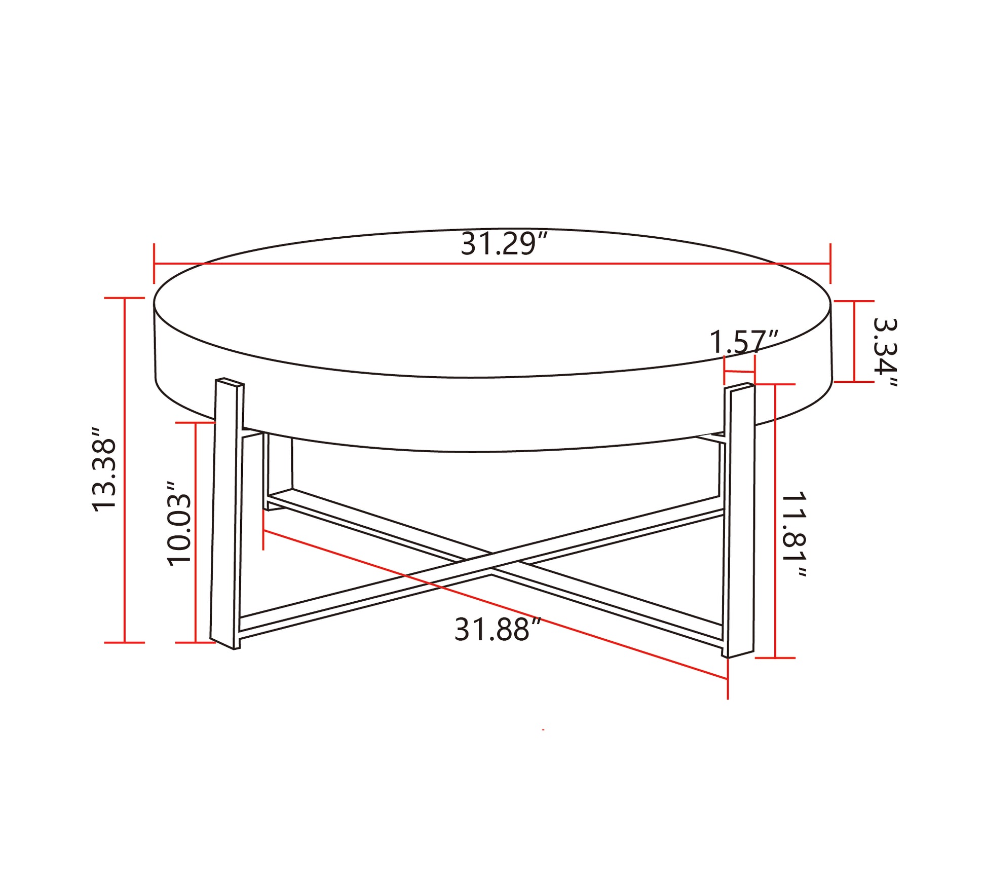 - High-quality materials: This round coffee table is made of high-quality fir wood on the top and sides, while the back of the table is made of high-quality MDF.The round coffee table has a solid metal iron frame, which is durable and solid, and cross legs provide stability.