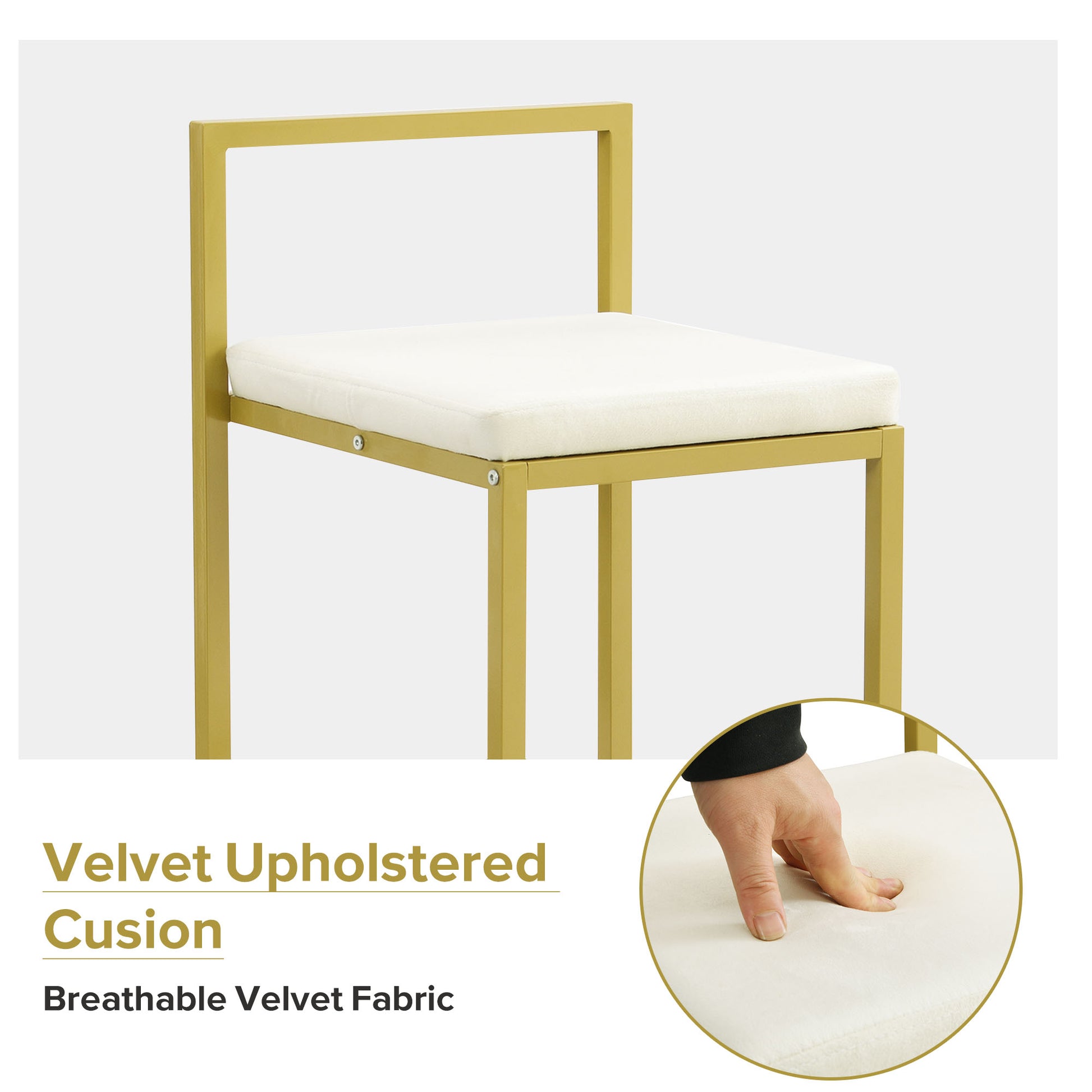 Set of 2 Modern White Velvet Counter Height Bar Stool with Back