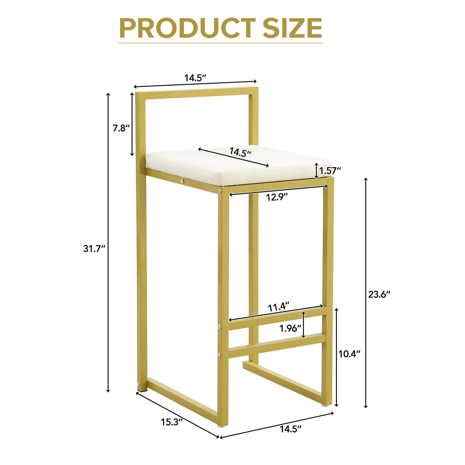- [Product Size] Each gold bar stools measures 15.35 inches (L) * 14.57 inches (W) * 31.50 inches (H), perfect fit for all standard bar stools, save space at home. They can also be used as dining room, bar, cafe and terrace