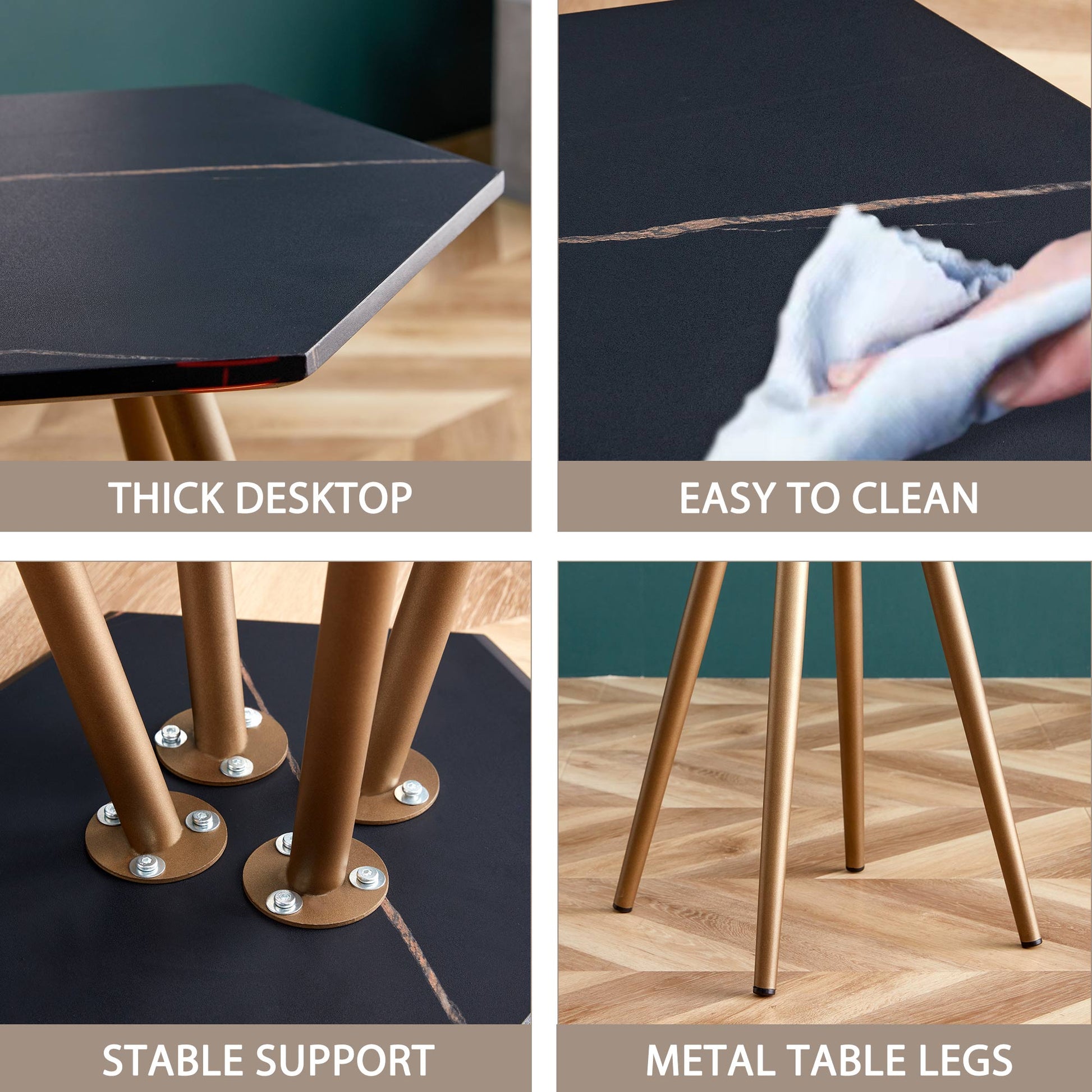 - Thick Desktop, Easy to Clean, Stable Support, Metal Table Legs