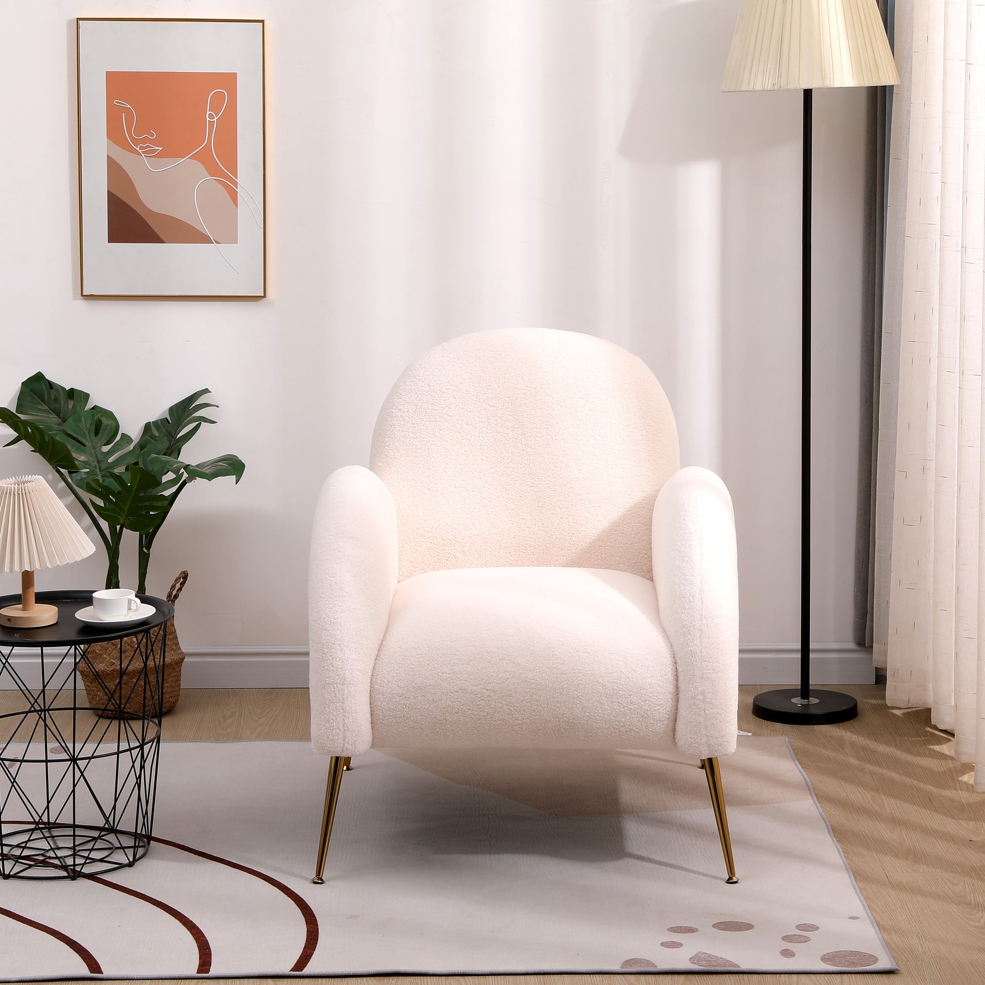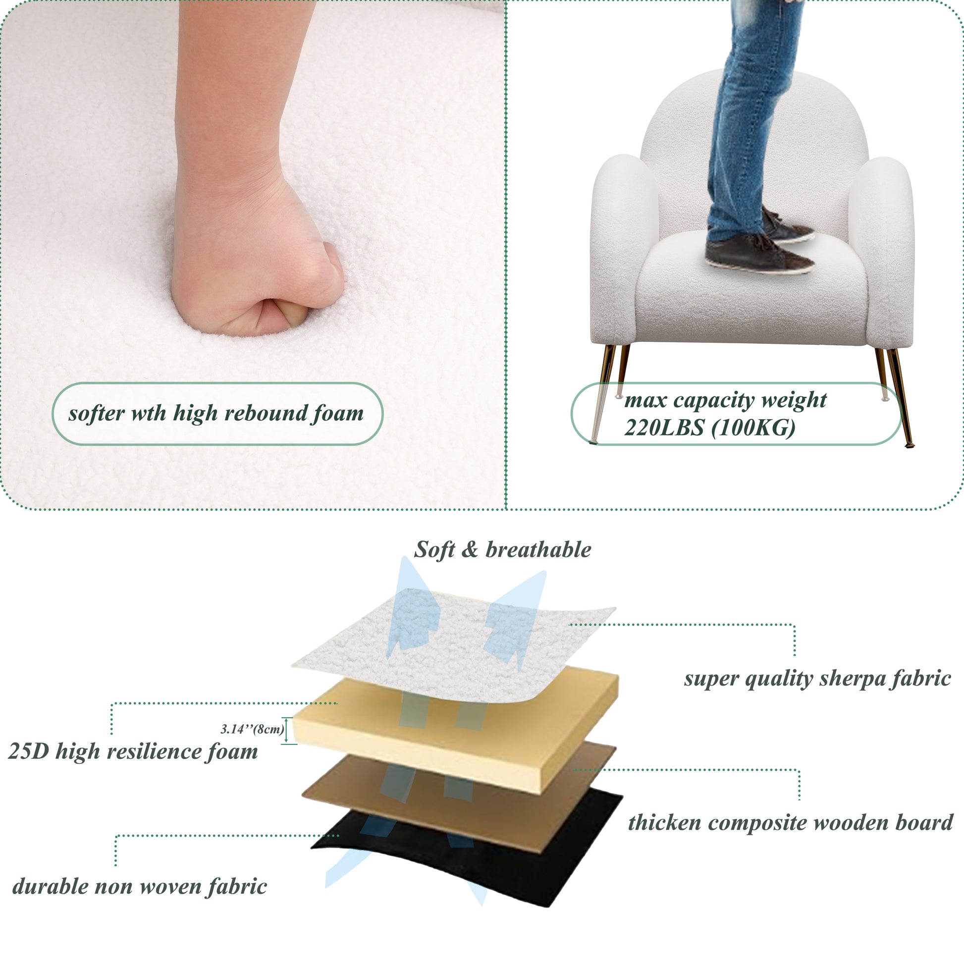 - A Sturdy & Durable Chair: With golden legs, our chair offers a reliable and stable structure. Its padded upholstered seat and sherpa provide soft and comfortable seating that lasts long under frequent use.