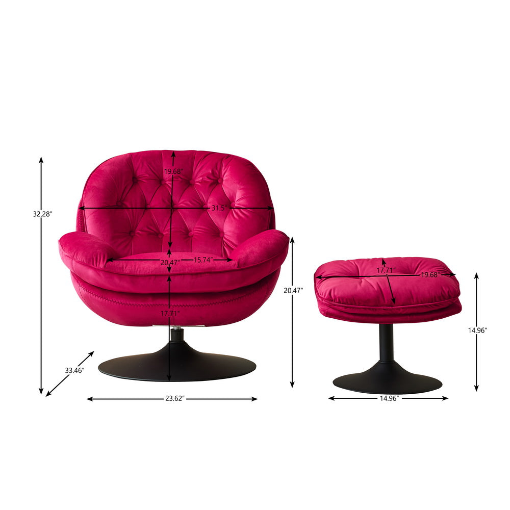 Product Name:Swivel Leisure chair lounge chair velvet RED color with ottoman
