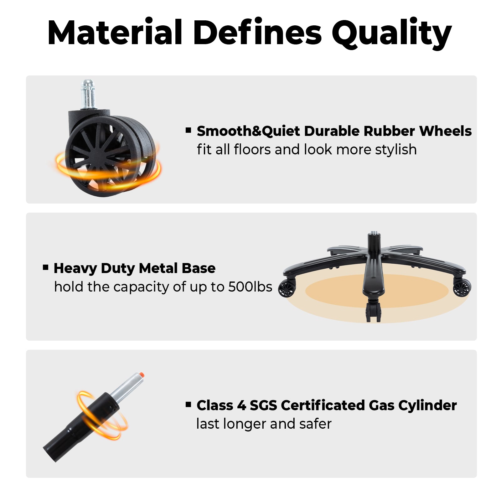 - Heavy-Duty Office Chair: Built to accommodate up to 500lbs, ensuring durability and stability, promising years of reliable use. Perfect for any office setting, whether it's at home or in a corporate environment, this chair adds a touch of elegance and professionalism.