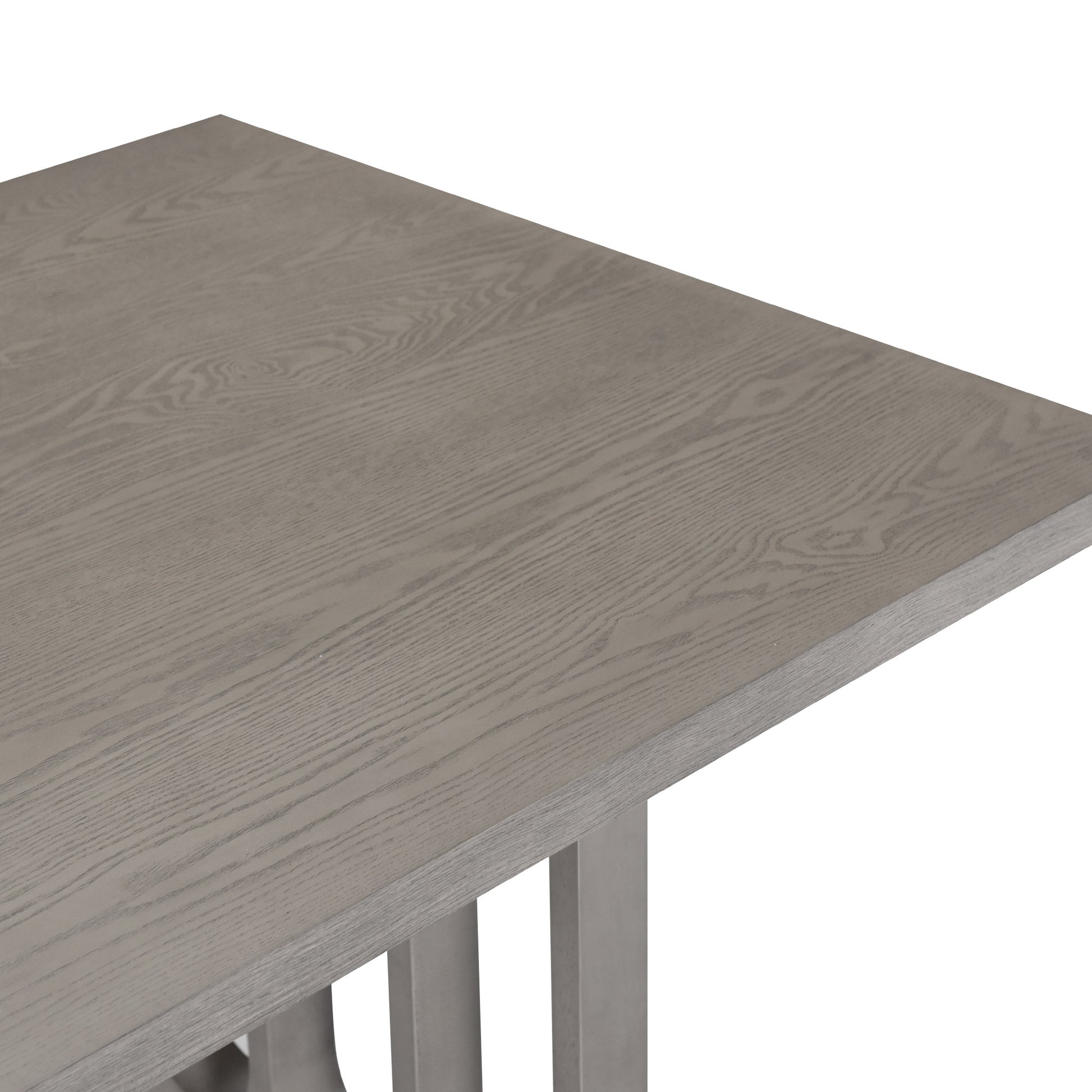 - The grey finish add a distinctly rustic look that easily updates any household.The natural wood grain of the tabletop of this dining table set complements a variety of unique interior styles by blending in seamlessly. Special U-shape design for table legs and chair backrests undoubtedly showcase a classic look, featuring an elegant and retro flair. Also, this chair backrest design is more breathable, which can bring you a more comfortable experience.